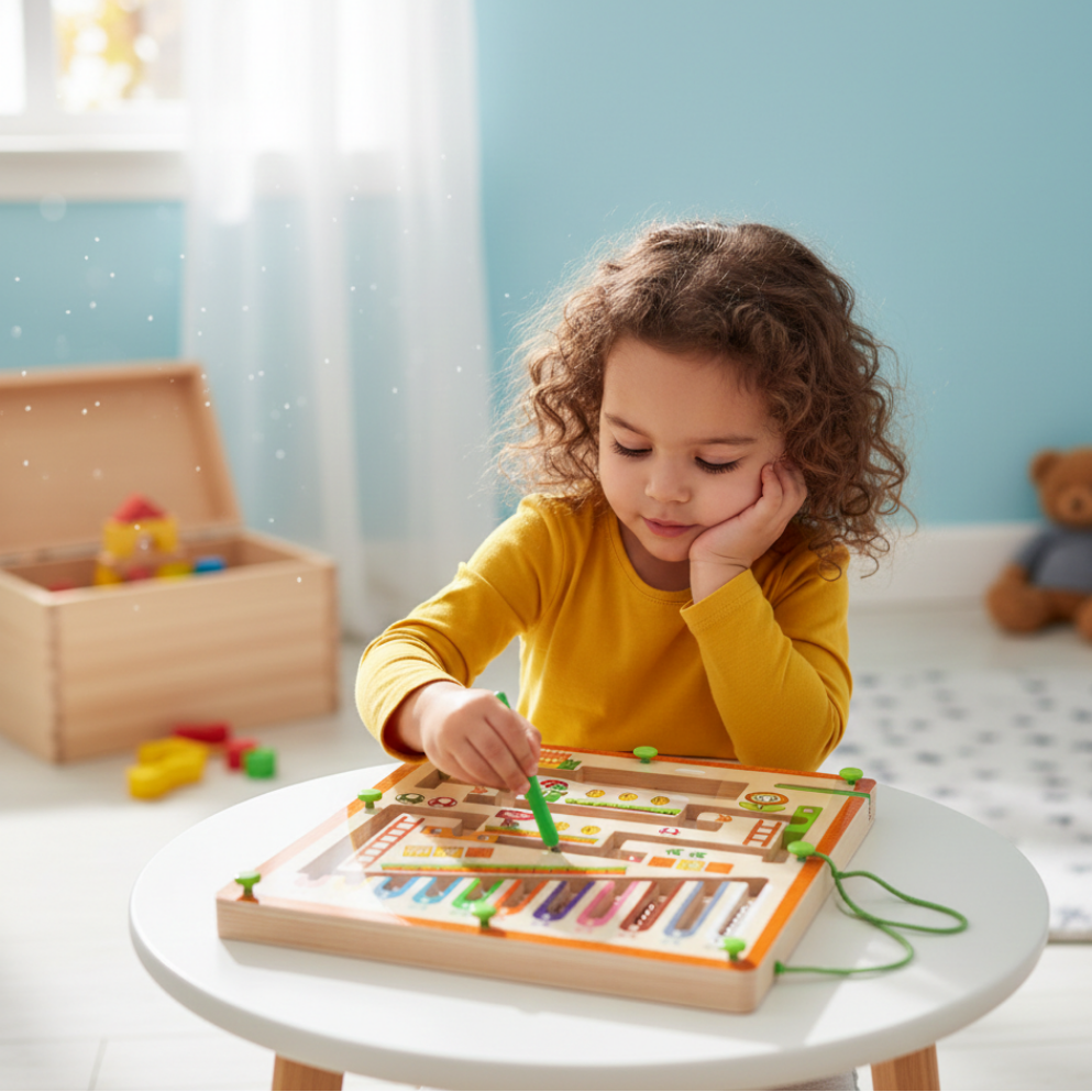 El uso del lápiz magnético mejora la precisión y el control de los movimientos, ayudando a perfeccionar habilidades necesarias para actividades escolares y tareas cotidianas.
